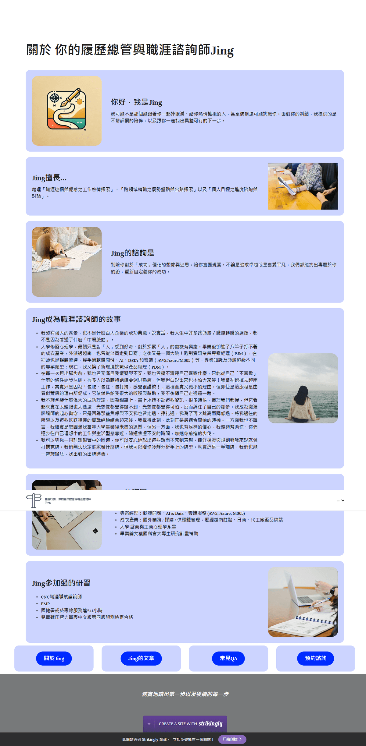 7天網站架設-職履行間|你的履歷總管與職涯諮詢師 Jing